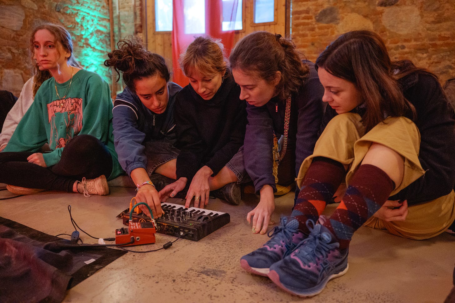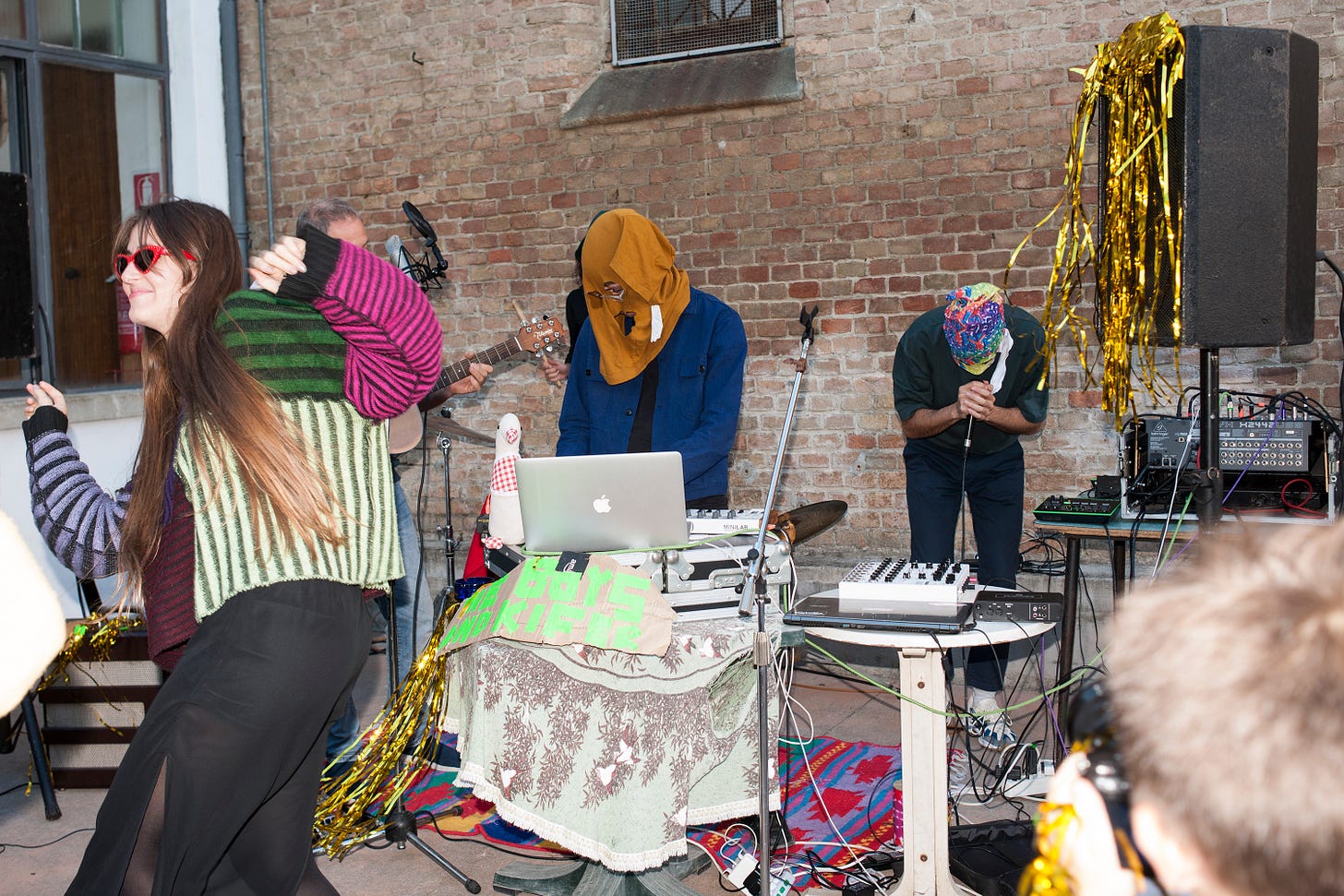 Ritrovare una forma che riguarda lo stare insieme, delle pratiche quotidiane attraverso cui far passare delle tematiche, questo è l’intento che The Boys and Kifer pone durante i propri workshop. L’ascolto e lo scambio di saperi e competenze in modo orizzontale è il metodo per far diventare ogni partecipante parte della band, eliminando ogni tipo di giudizio o autorità. Tutto rassomiglia a una sorta di sala prove in cui degli amici si ritrovano per il gusto di essere semplicemente lì, non perché debba essere per forza mostrato qualcosa. La performance finale dipende dal volere di tuttɜ. Suonare durante un live o un workshop di The Boys and Kifer non vuol dire mai imparare a suonare qualcosa di specifico ma è imparare soprattutto ad ascoltarsi e a sentire cosa stiamo facendo noi e le altre persone, per questo motivo all’interno delle loro attività sono benvenute persone di ogni genere senza necessariamente avere requisiti di un certo tipo. La loro metodologia sa di essere fallace e fa leva su questa sua costante insicurezza fatta di luoghi, persone e momenti per giocare e sperimentare.
