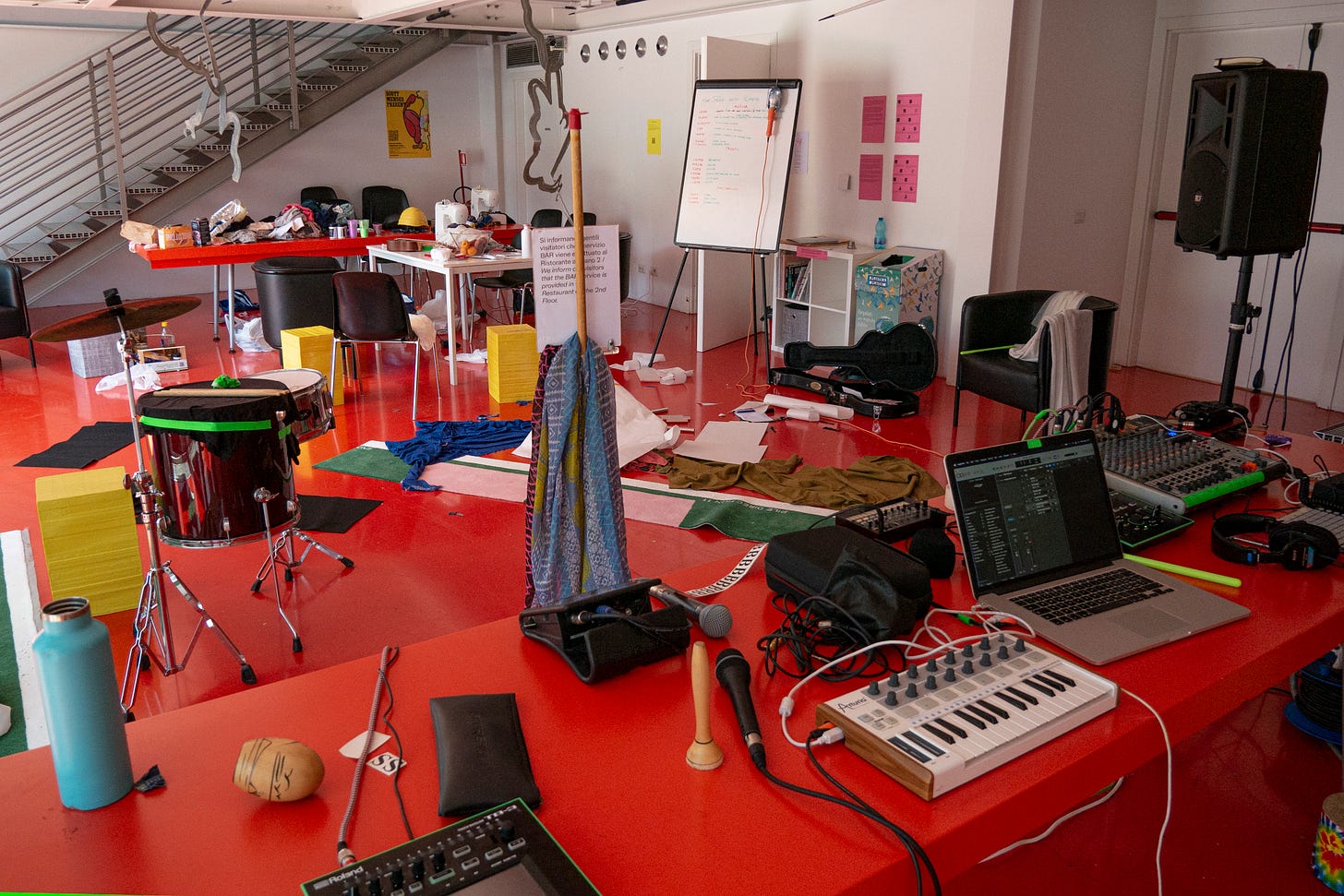 Sicuramente il libro ‘Undercommons’ di Stefano Harney e Fred Moten e ‘Staying with the Trouble’ di Donna Haraway ha portato Casti e Rossi a riflettere sui modi di attivazione dello studio, inteso secondo una prospettiva ribaltata in cui l’improvvisazione e il divertimento sono strumenti di ricerca e sperimentazione. Lo studio non è più solo uno strumento per un obiettivo finale ,ma fa sì che il retroscena acquisisca la stessa importanza del risultato, se non di più. In questo modo le performance prendono ispirazione da un’estetica del “far vedere”.
